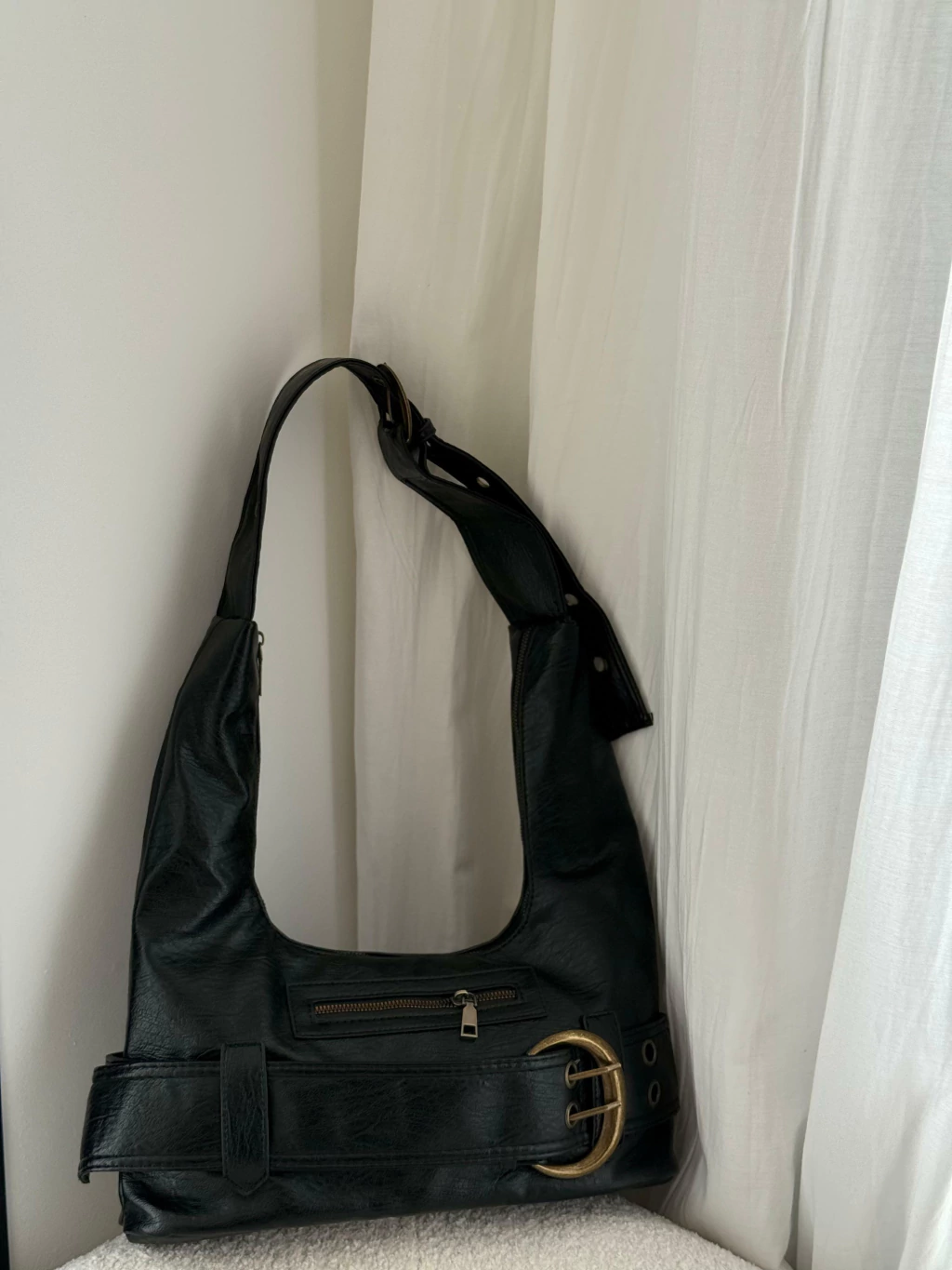 DETALLES: CON FAJA Y HEBILLA - CIERRE PRINCIPAL Y BOLLSILLO ATRAS - FORRO INTERNO - MINI BOLSILLO AL FRENTE - CORREA CON HEBILLA Y OJALES REGULABLES