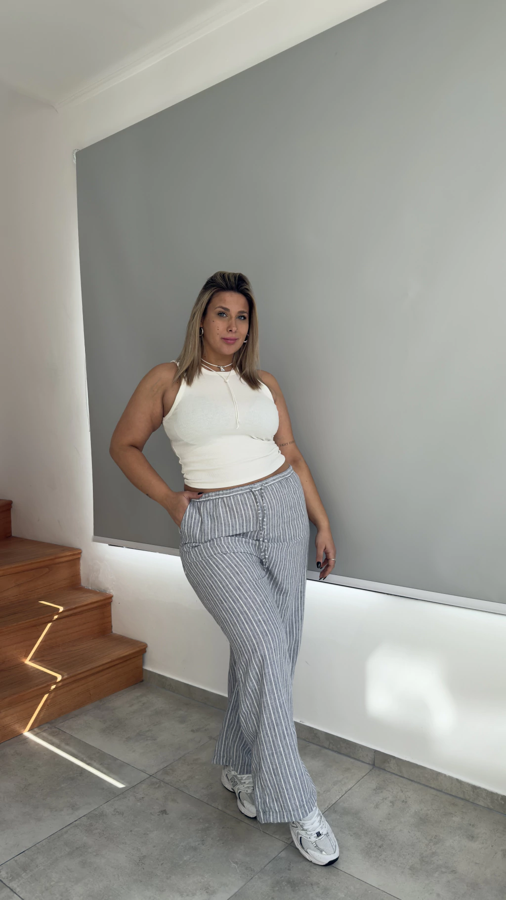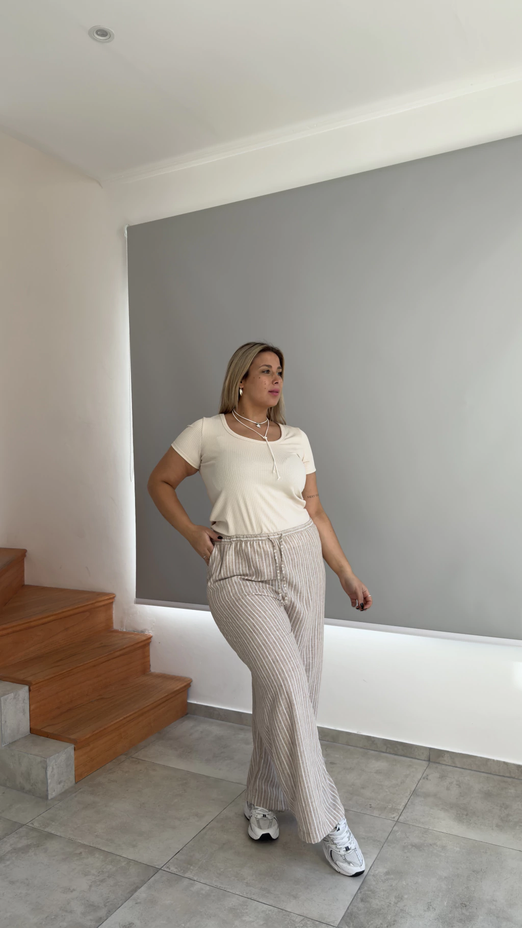 DETALLES: CORTE PALAZZO - CINTURA ELASTIZADA CON TIRA AJUSTABLE - BOLSILLOS
