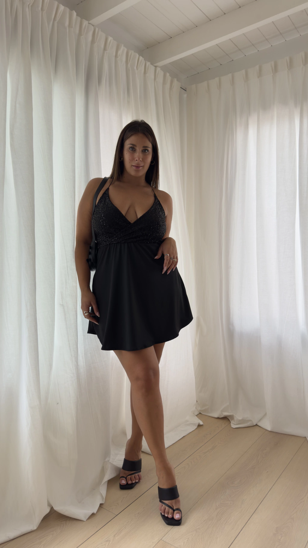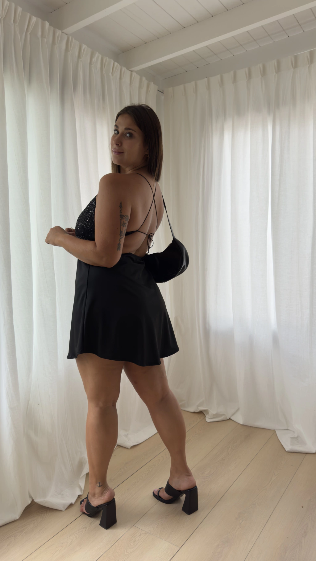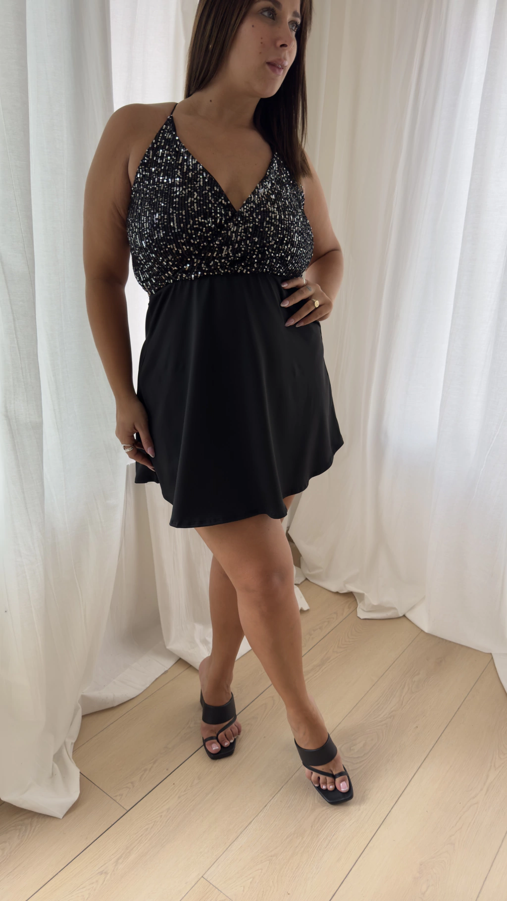 DETALLES: BUSTO DE PAILLETTE - BRETEL FINO PARA ATAR EN ESPALDA - FALDA EVASÉ